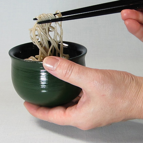 輪島塗 ラフ そば猪口 刷毛目塗 緑/内黒 艶高