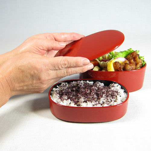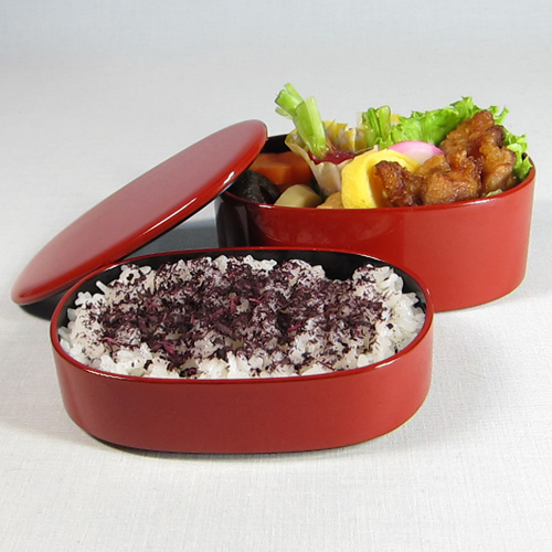 輪島塗 クラシック 弁当箱 小判二段 弁当箱 朱(無地) 艶高