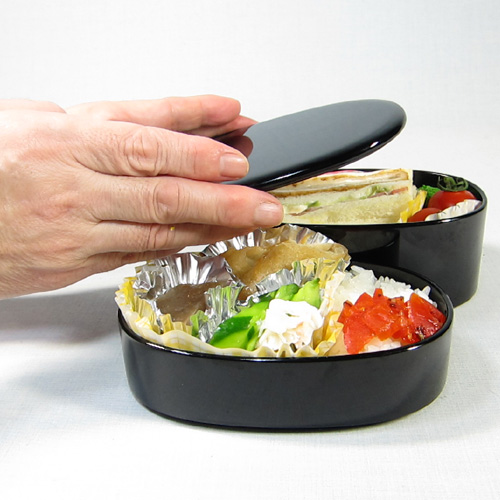 輪島塗 クラシック 弁当箱 小判二段 弁当箱 黒(無地) 艶高