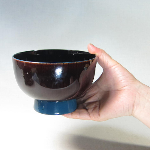 輪島塗 木地呂塗 大振椀 上縁/高台 青