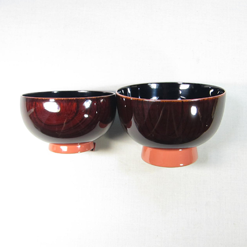 木地呂塗とは欅や、栓の木など木目のはっきりとした木地に、透明度の高い褐色の漆を塗り木の質感を損なわない力強い木目の見える技法。塗太郎では内側は堅地仕様、外側は木地呂塗で仕上げ、さらにパステルなピンクでアクセントを付けました。ふき漆とは違い使い込むことでさらに透明度が増し上品さが保てます。もちろん塗直しも可能です。。