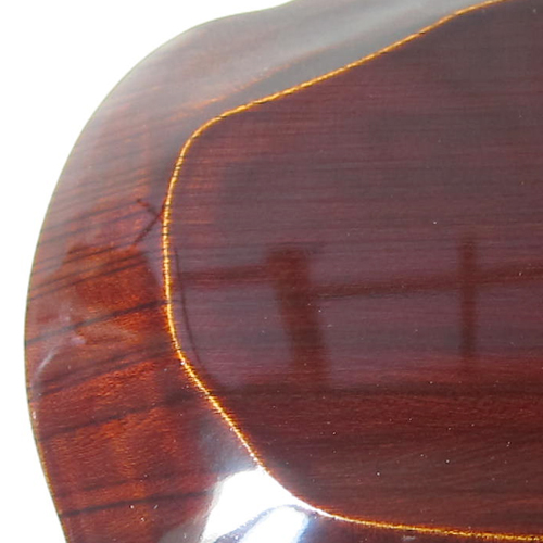 木地呂塗とは欅や、栓の木など木目のはっきりとした木地に、透明度の高い褐色の漆を塗り木の質感を損なわない力強い木目の見える技法。塗太郎では内側は堅地仕様、外側は木地呂塗で仕上げ、さらに細い縁回りを朱色でアクセントを付けました。ふき漆とは違い使い込むことでさらに透明度が増し上品さが保てます。もちろん塗直しも可能です。