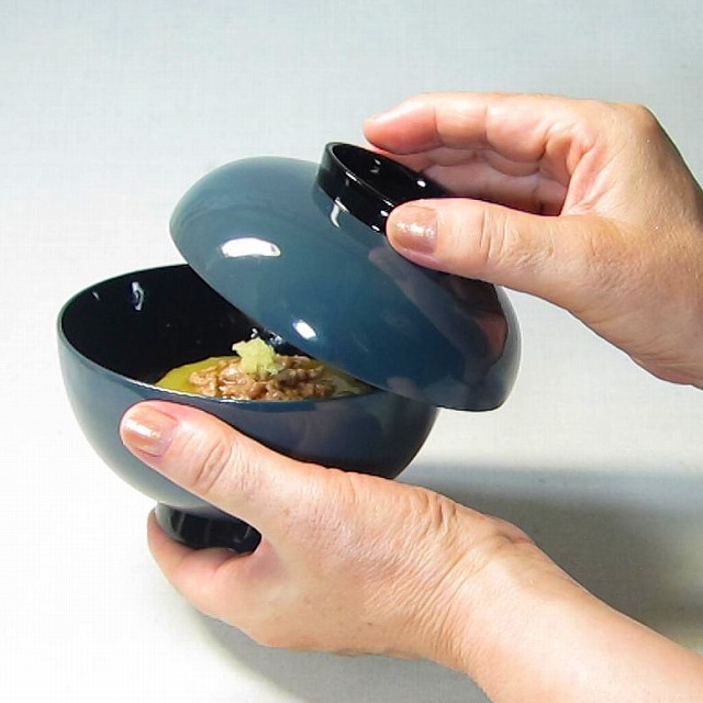 輪島塗 ヴィンテージ 煮物椀 目ハジキ 青 [艶高]