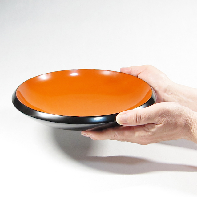 輪島塗 盛器 黒 オレンジ朱【半艶消】