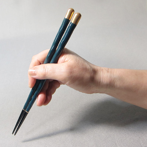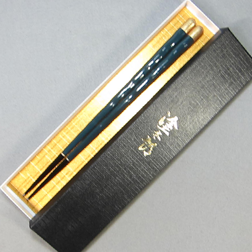 輪島塗箸 箸工房オリジナル 青/先黒 23cmけずり箸