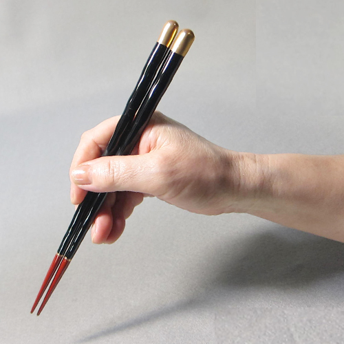 輪島塗箸 箸工房オリジナル 黒/先赤 23cmけずり箸