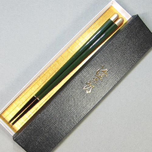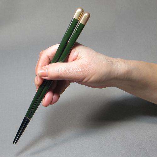 輪島塗箸 箸工房オリジナル 緑/先黒 23cm角箸