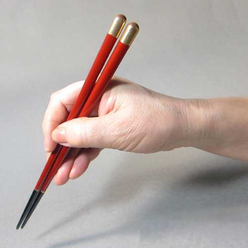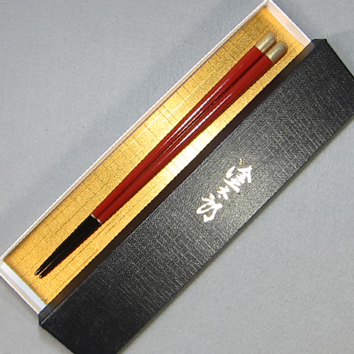 輪島塗箸 箸工房オリジナル 赤/先黒 22cm角箸(女性向け)