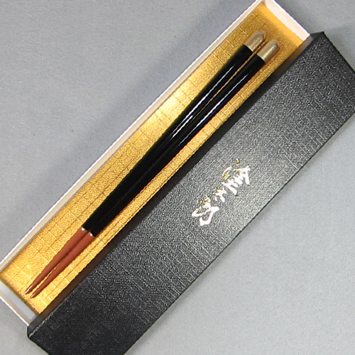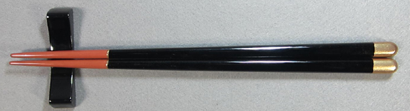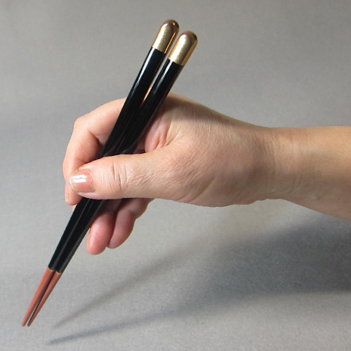 輪島塗箸 箸工房オリジナル 黒/先ピンク 22cm角箸(女性向け)