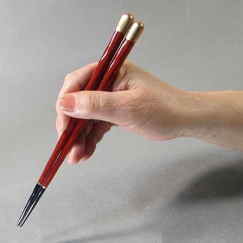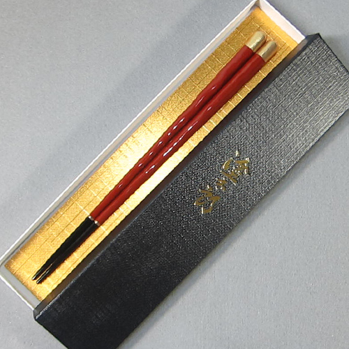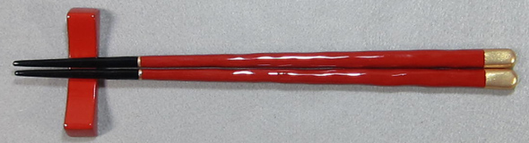 輪島塗箸 箸工房オリジナル 赤/先黒 22cmけずり箸(女性向け)