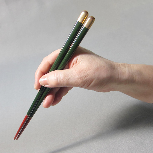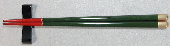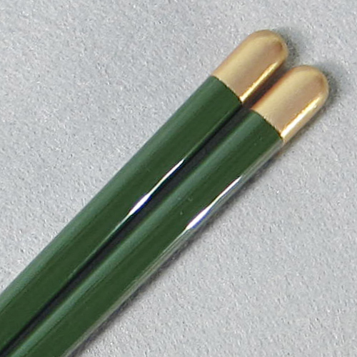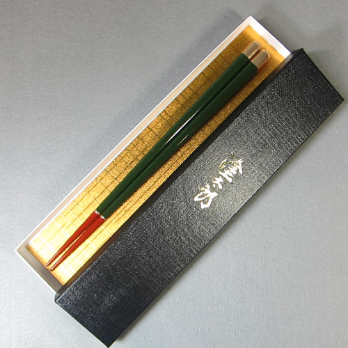 輪島塗箸 箸工房オリジナル 緑/先赤 23cm角箸