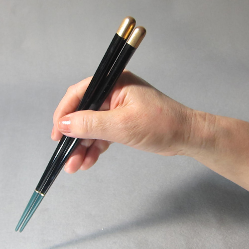 輪島塗箸 箸工房オリジナル 黒/先青 23cm角箸
