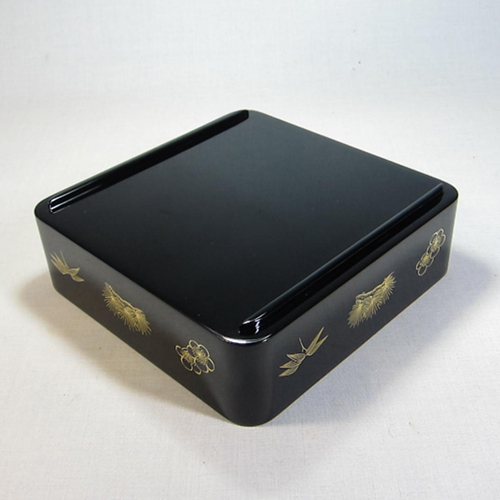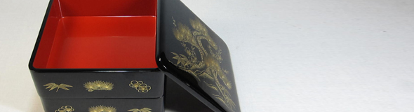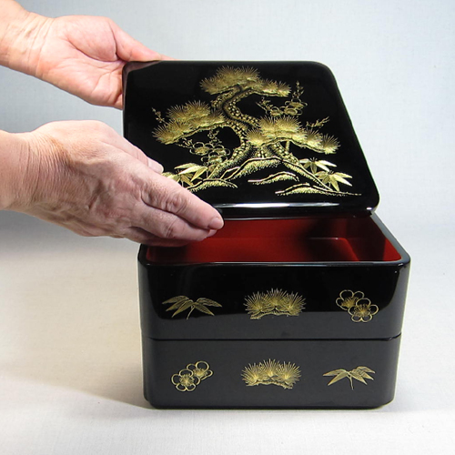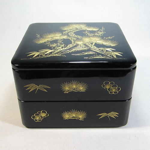 輪島塗 ヴィンテージ お重箱 二段手彫沈金 松竹梅 -黒- [艶高]