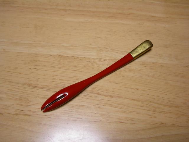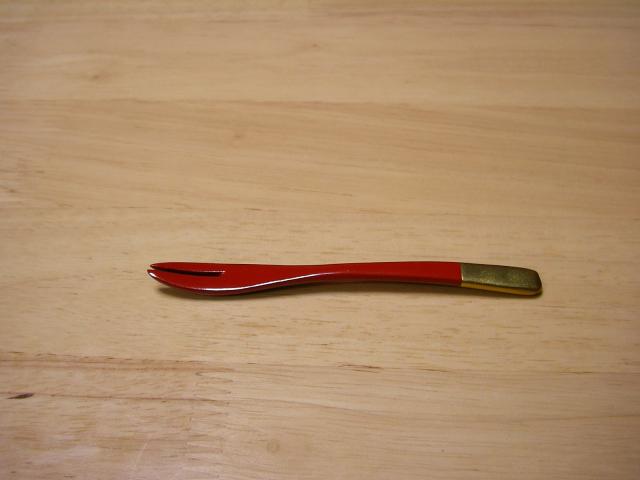 しっかり主役を努めている朱塗りのフォークです。
