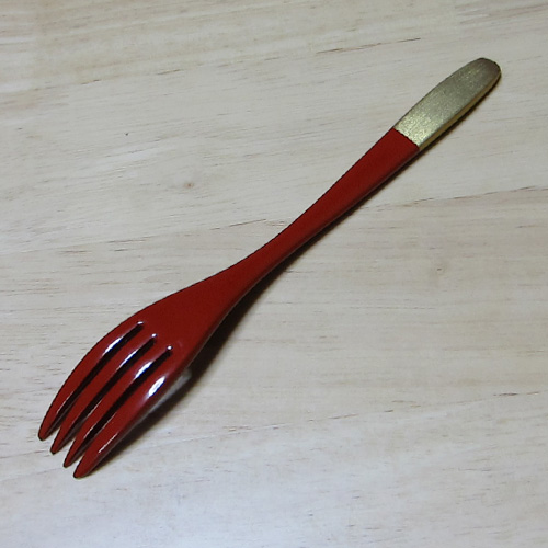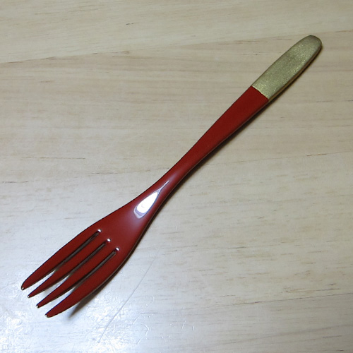 輪島塗 カトラリー 漆塗フォーク-朱 持手金(大)[艶高]