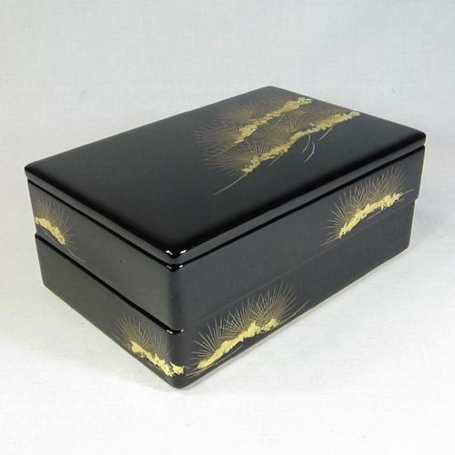 輪島塗 ヴィンテージ 長方重 黒 手彫沈金 松 [艶高]