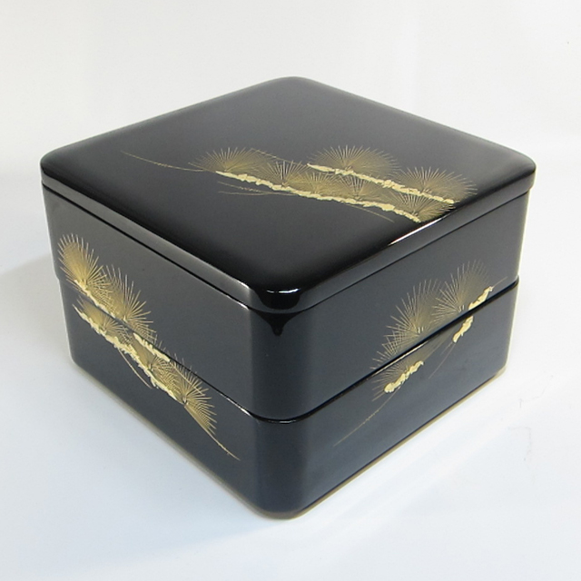 輪島塗 ヴィンテージ お重箱 二段手彫沈金 松 -黒- [艶高]