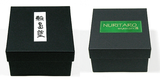 商品パッケージについては、(左:輪島塗)と紙箱(右:塗太郎オリジナル)の2種類をご用意しております。