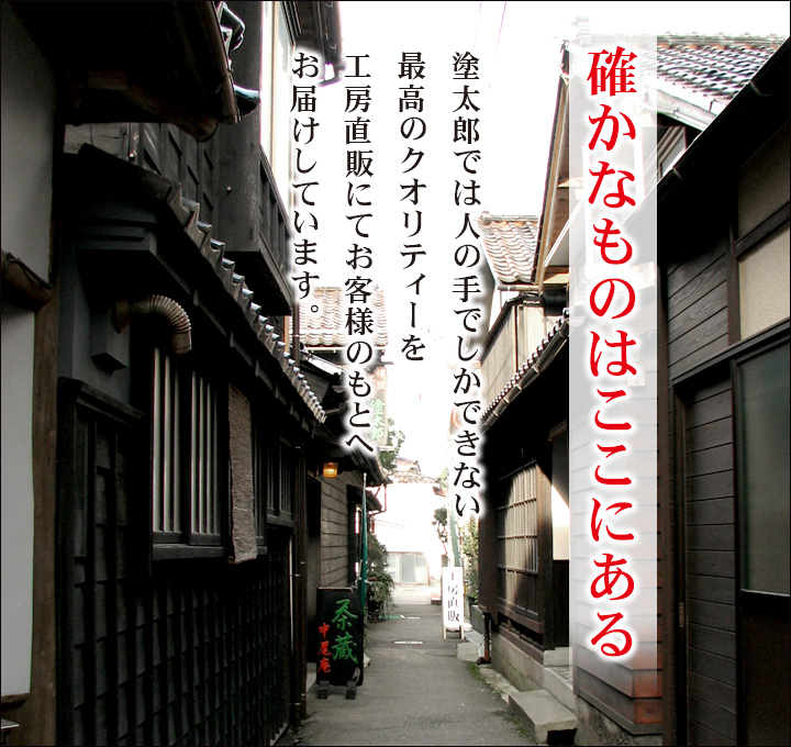 石川県輪島市にて輪島塗漆器製造・販売店舗を構える「塗太郎」のweb店舗です。塗太郎では下地から上塗り、手描き蒔絵や沈金など、すべての工程が自社で行われているので、「良質・本物・安心」の商品をお手ごろの価格でお届けすることが可能です。